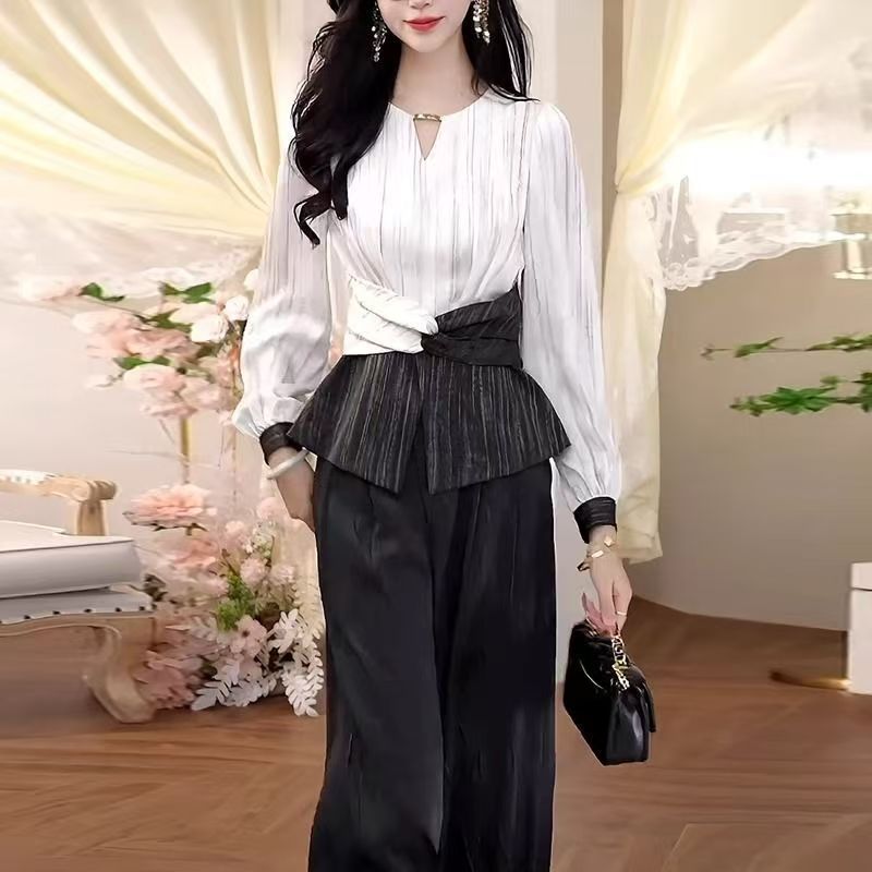 早秋穿搭套装女2025新款高级感气质收腰显瘦上衣休闲阔腿裤两件套