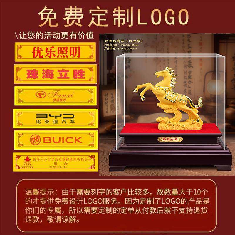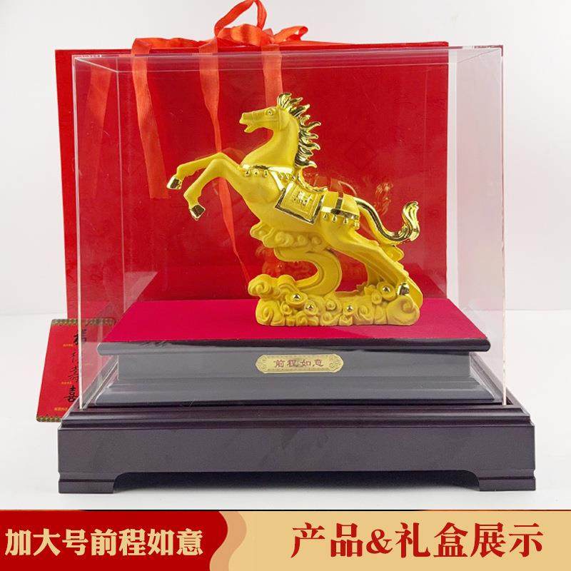 电视柜上的装饰品摆件高级感客厅金马绒沙金前程似锦生肖马送客户
