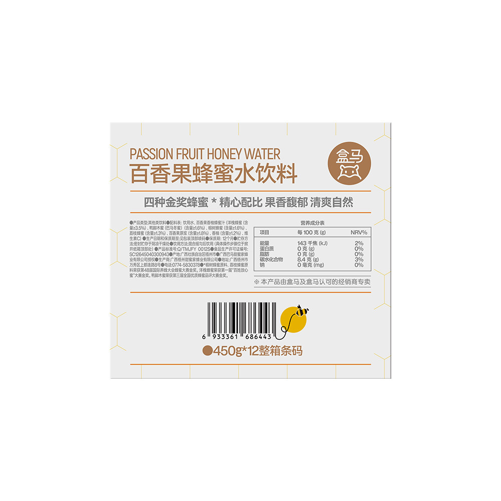 盒马 摇摇百香果蜂蜜水 450g*12瓶