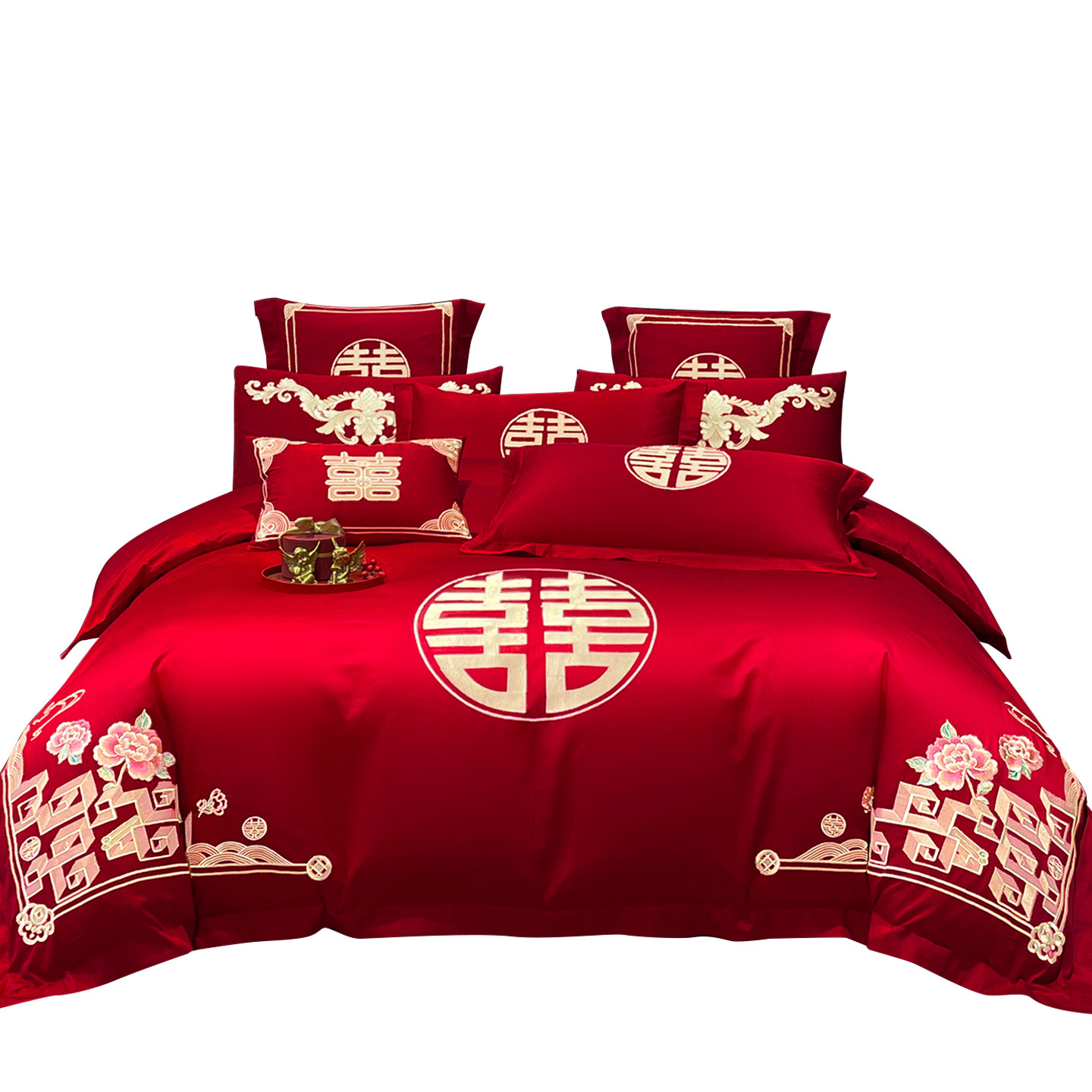 婚庆四件套婚嫁新婚床品刺绣被套红色结婚礼婚房婚床喜庆中式套件