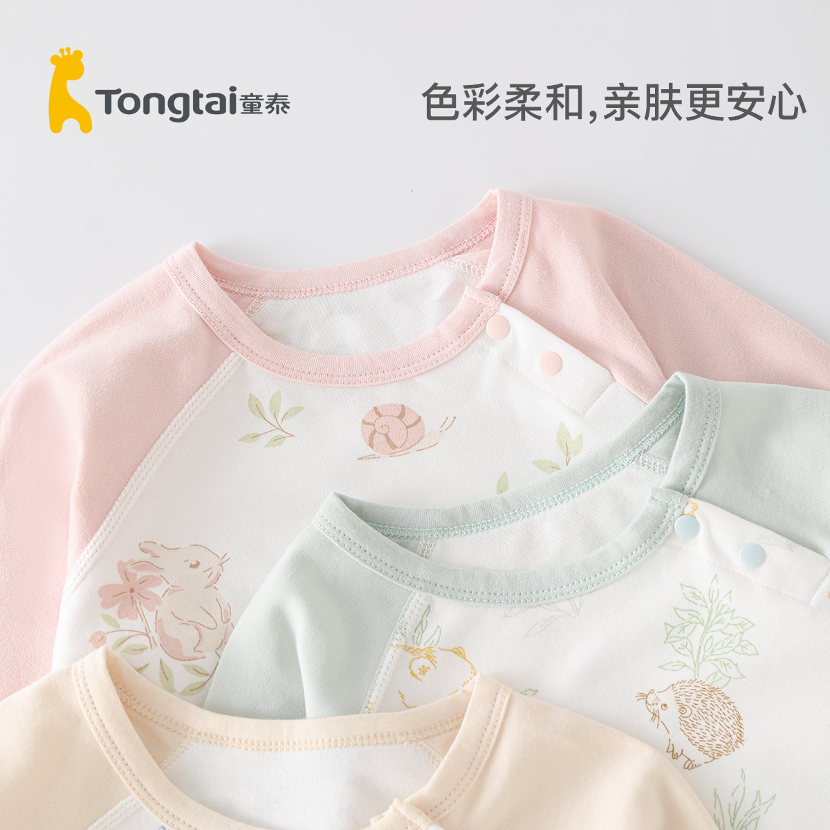 童泰春秋季婴儿纯棉睡袍宝宝短袖连体衣睡衣男女童新生儿家居服