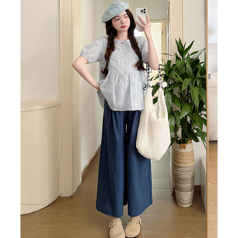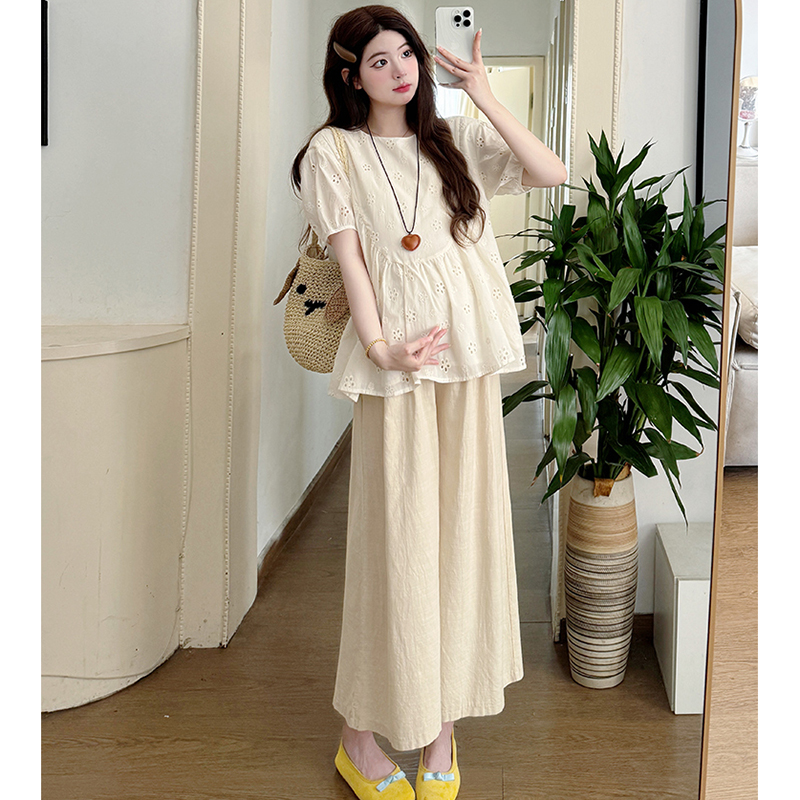 孕妇套装夏季2025新款韩版时尚宽松杏色圆领短袖上衣裤子两件套女