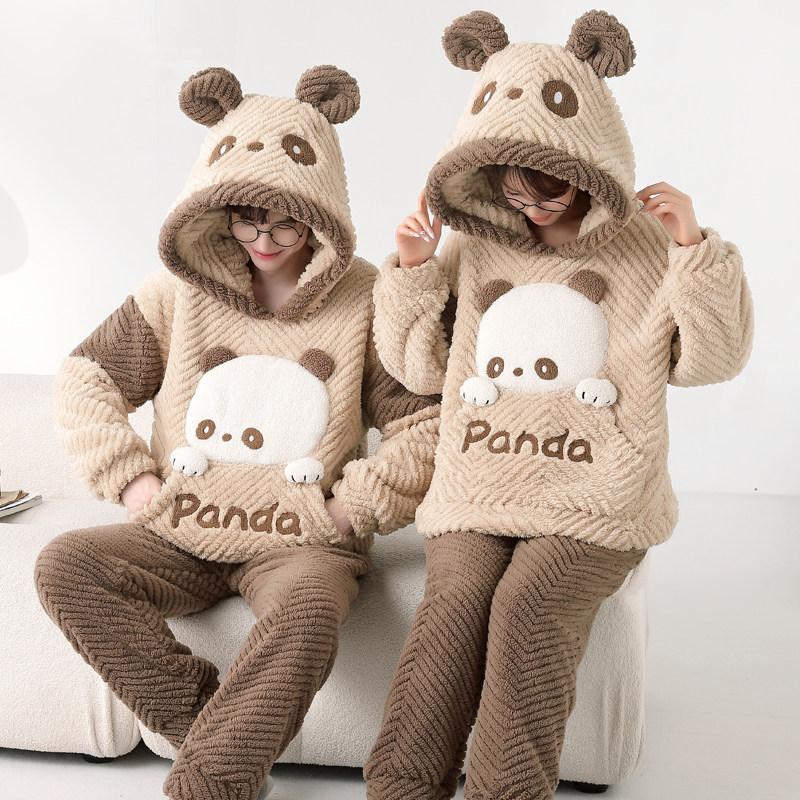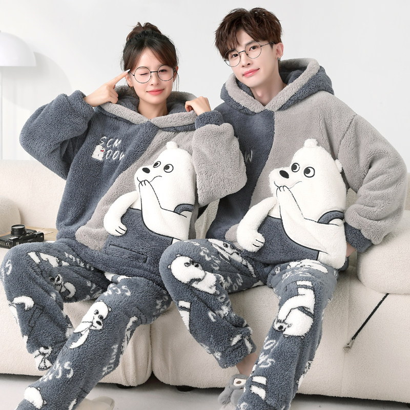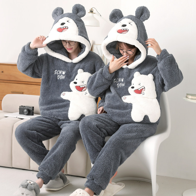 情侣睡衣秋冬款珊瑚绒睡衣女加厚加绒冬季可爱卡通家居服男士套装