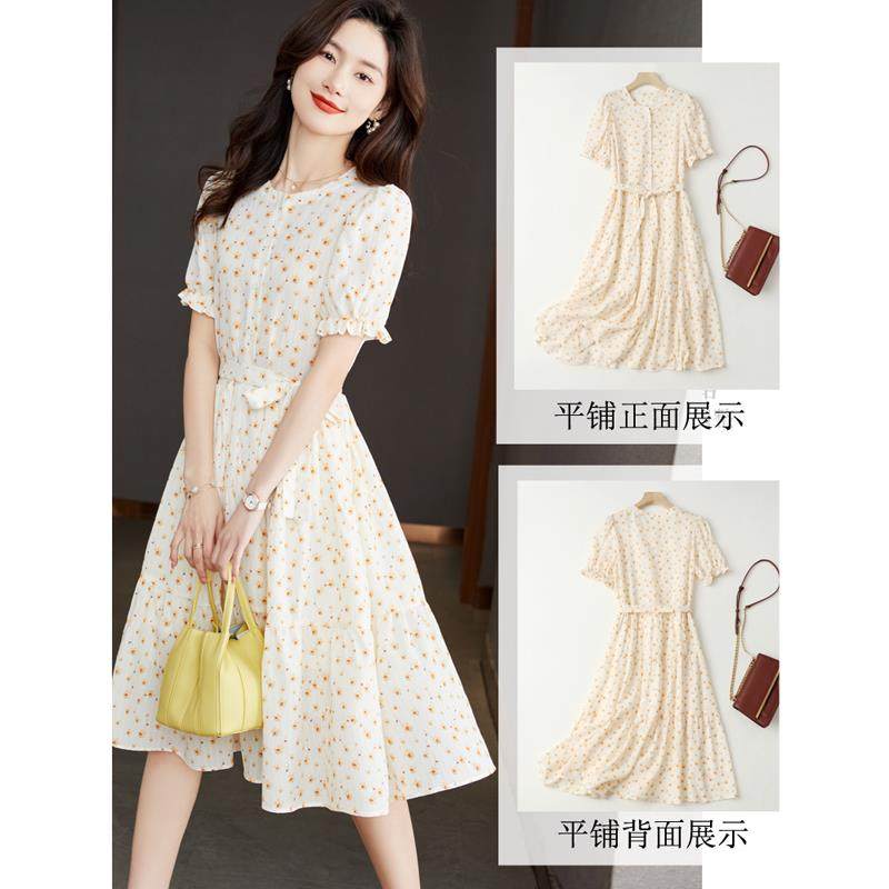 2025夏季新款别致减龄碎花雪纺连衣裙小个子气质穿搭收腰裙子女士