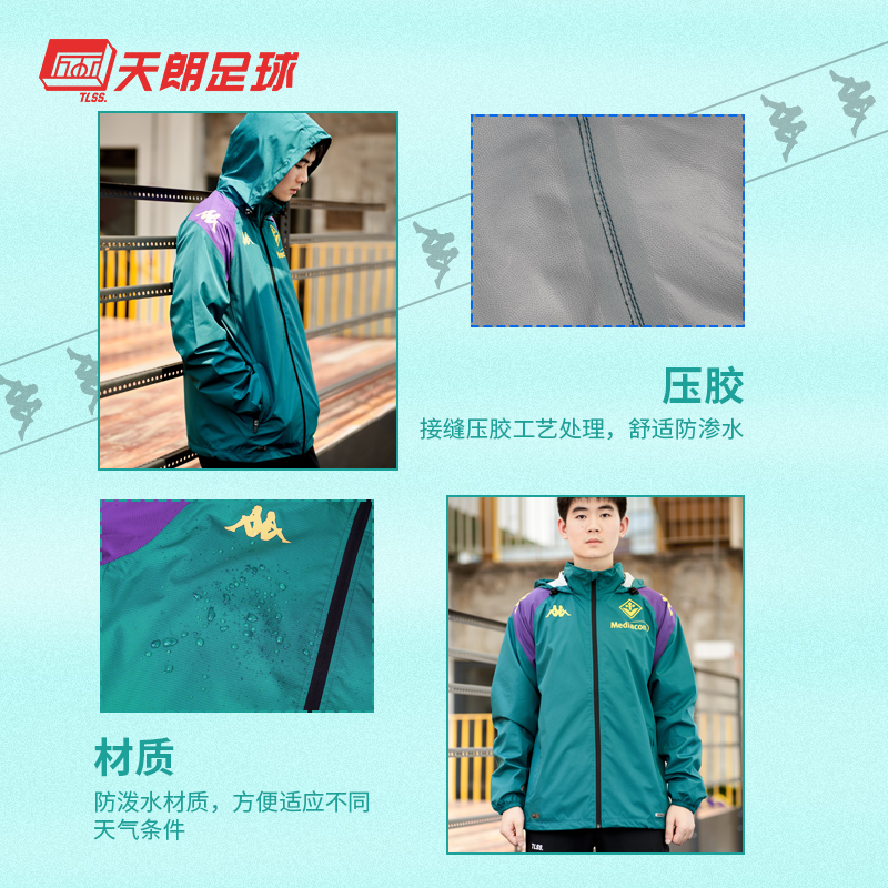 天朗足球 KAPPA卡帕佛罗伦萨运动风雨衣连帽长袖外套夹克381L3YW