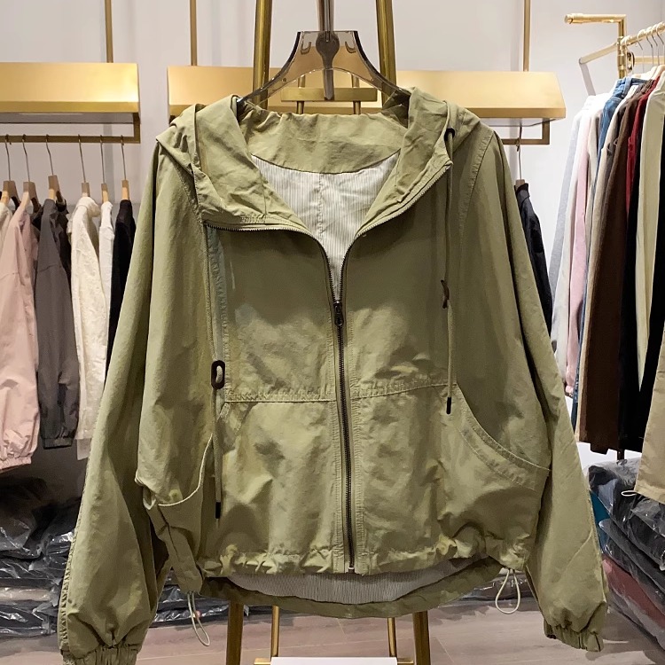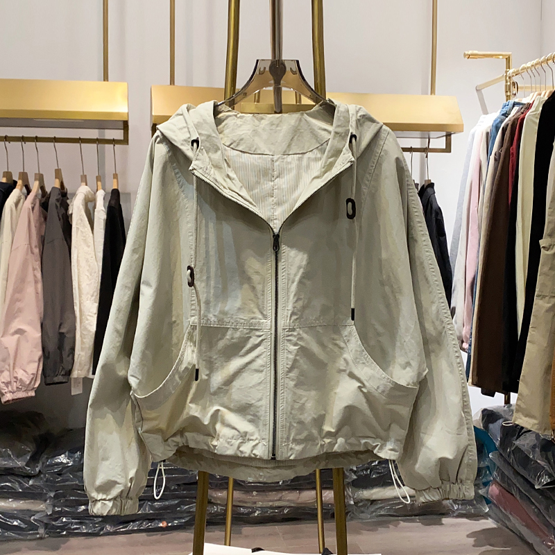 春秋韩版宽松连帽设计感显瘦百搭休闲工装夹克上衣冲锋衣短外套女