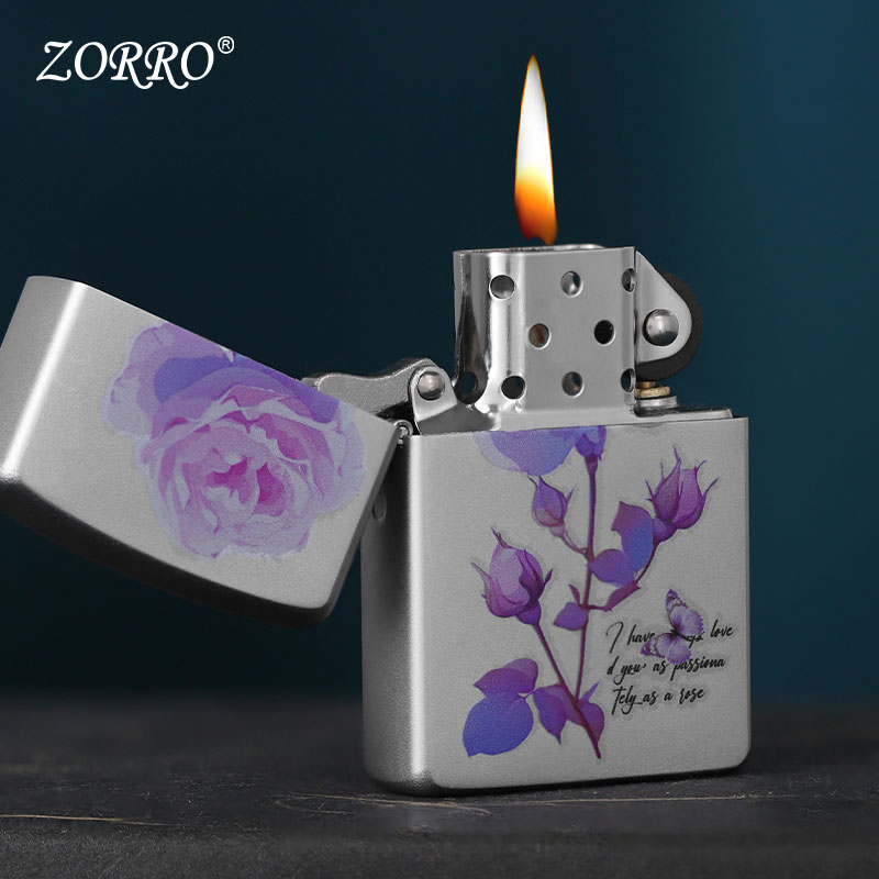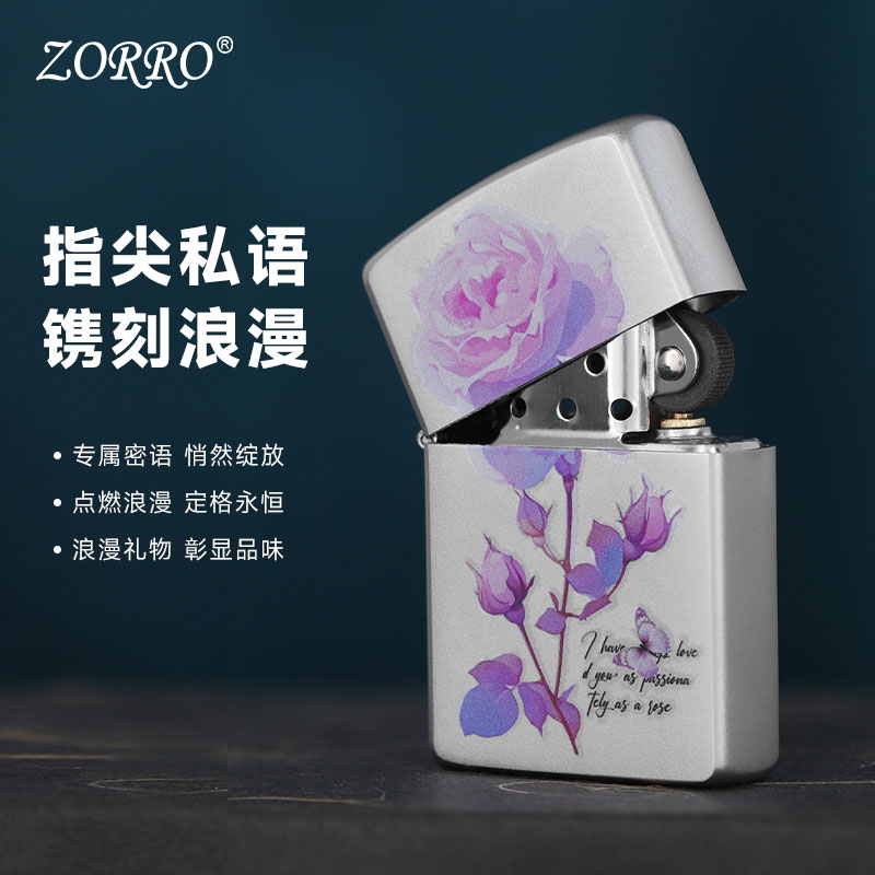 ZORRO佐罗官方旗舰煤油打火机生日礼物高档防风送男朋友玫瑰秘语
