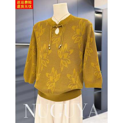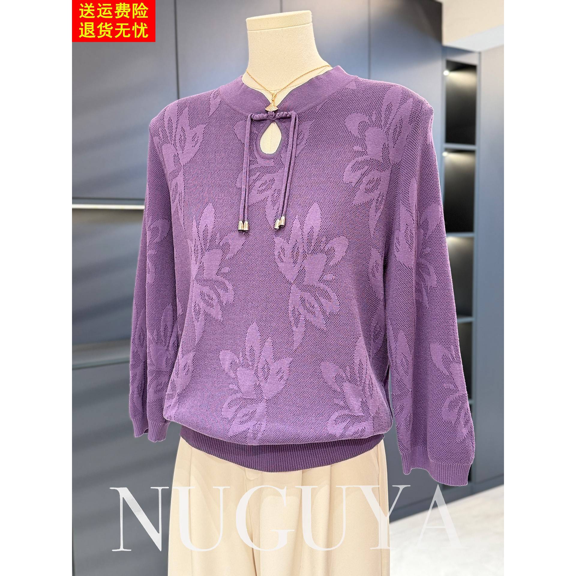 新中式国风妈妈装针织衫女春秋新款上衣气质百搭小衫中老年打底衫