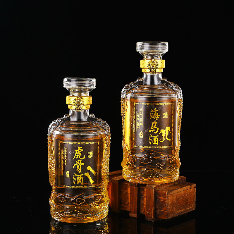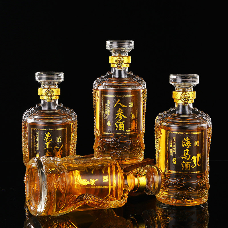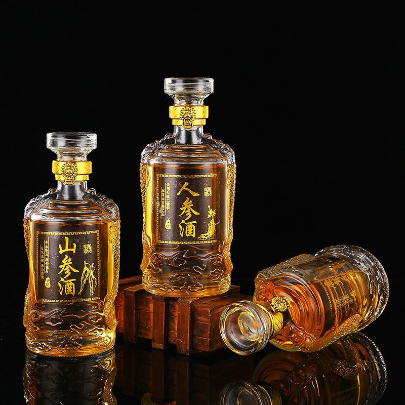 高档泡酒白酒瓶1斤装透明玻璃红酒瓶密封葡萄空酒瓶家用定制带盒