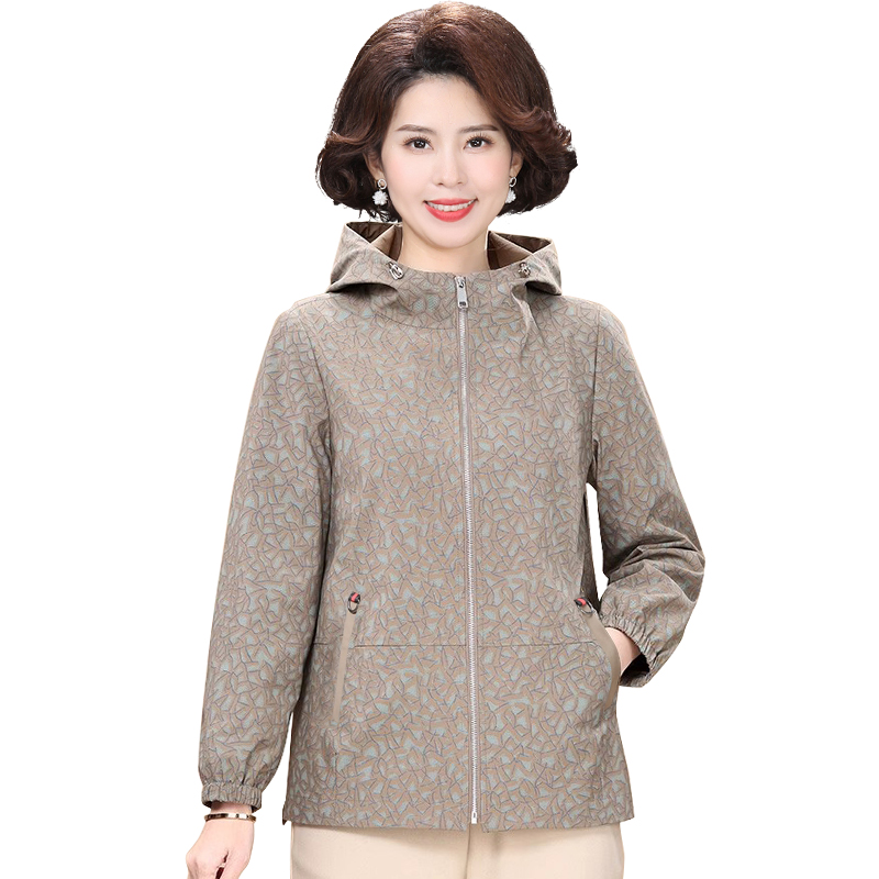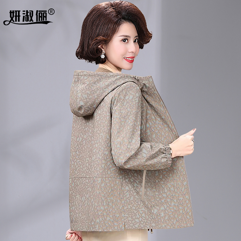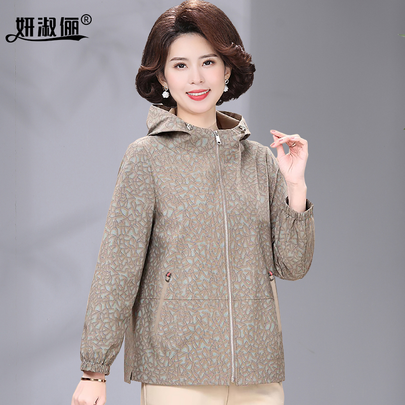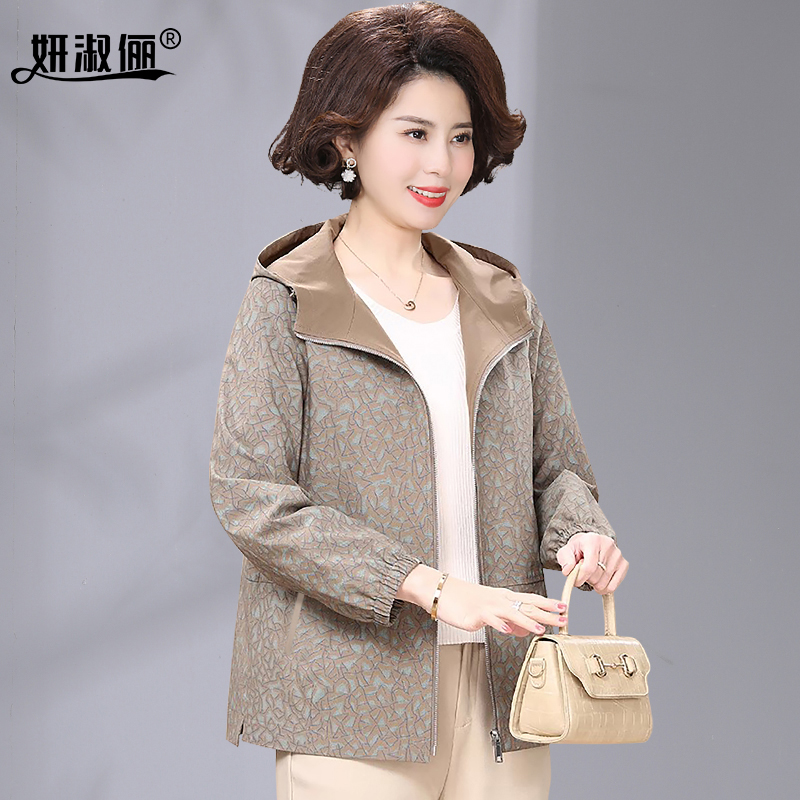 妈妈2025新款秋装夹克上衣开衫中年妇女品牌外套休闲宽松连帽风衣