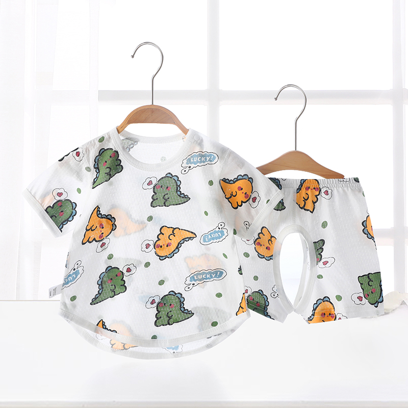 婴儿薄款套装纯棉夏季男女宝宝半袖空调服儿童短袖睡衣开裆裤衣服