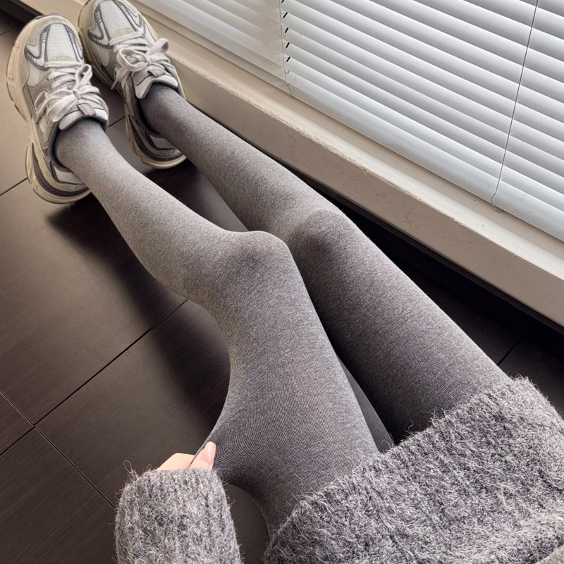 秋冬款加绒加厚烟灰色连裤袜显瘦黑丝外穿女保暖深灰色棉打底裤