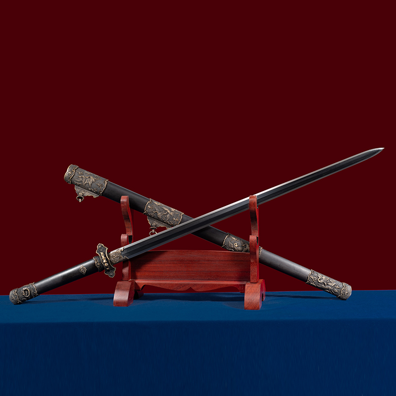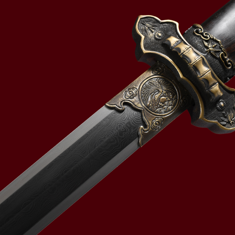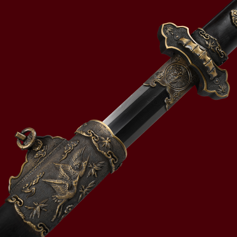 双鹤唐剑 花纹钢 汉唐横刀剑 龙泉沈广隆剑 手工一体刀剑 未开刃
