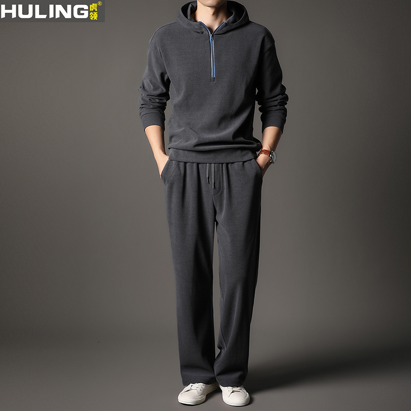 春秋季男士休闲套装宽松中青年爸爸装两件套运动男装连帽卫衣裤子