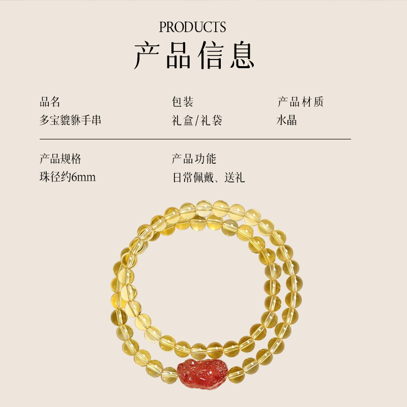 遇见普陀山天然水晶貔貅多宝手串玛瑙金发晶招财双圈手链女款礼物