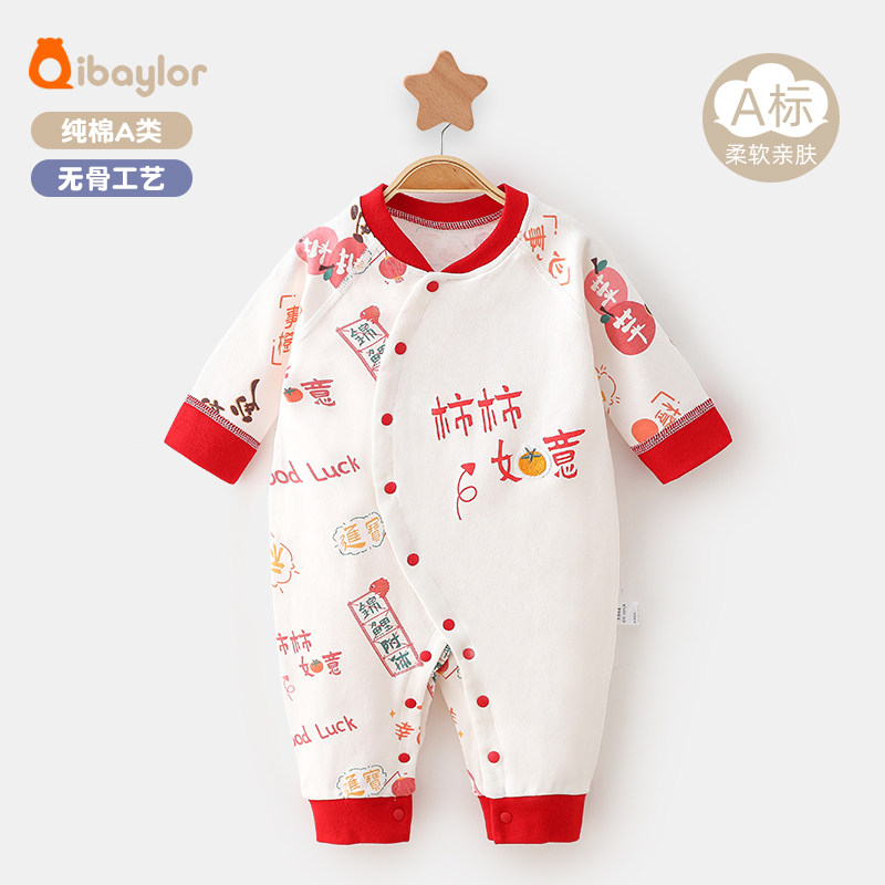 新生婴儿衣服春秋冬季连体衣纯棉哈衣红色满月宝宝装爬服0-18个月