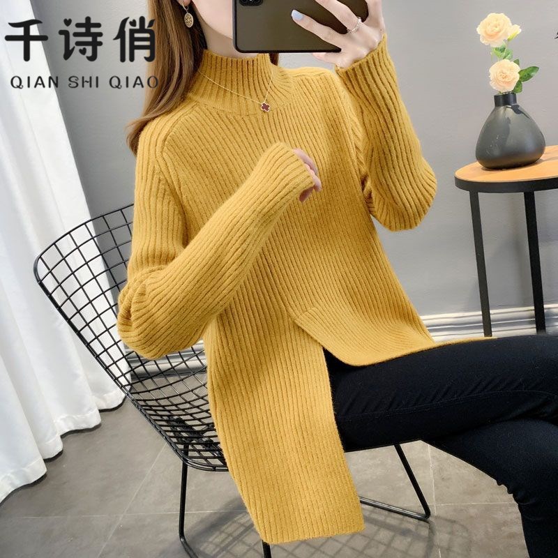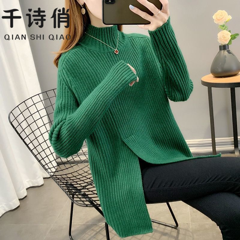 2024秋冬季新款中长款半高领套头毛衣女加厚针织衫洋气外穿长袖潮