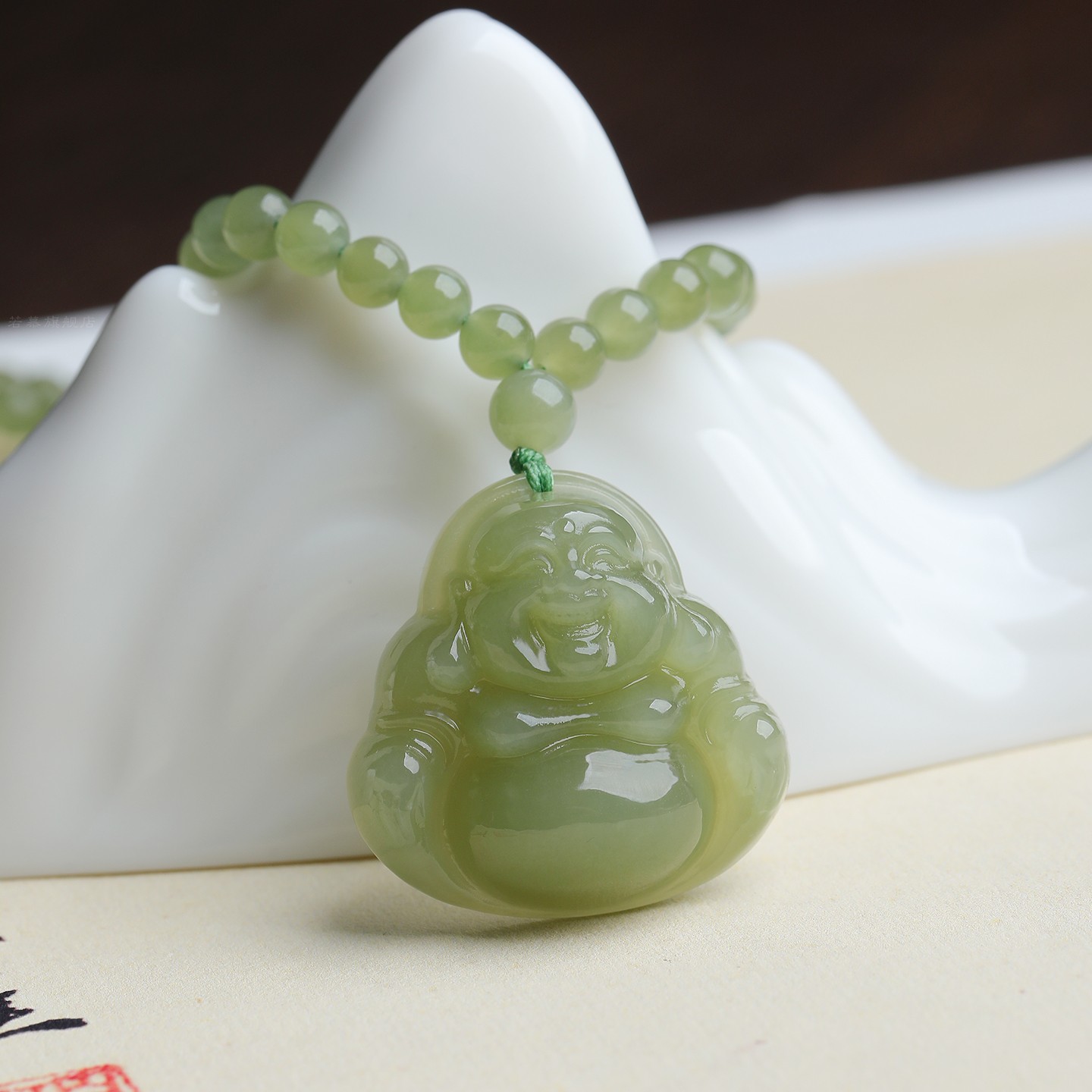 天然晴水和田玉佛公吊坠弥勒佛大肚佛翡翠项链女挂绳笑佛玉石玉坠