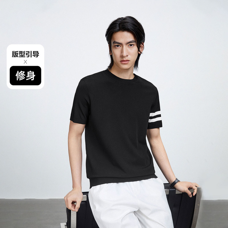 【断码钜惠】太平鸟男装 夏线套衫T恤短袖上衣宽松