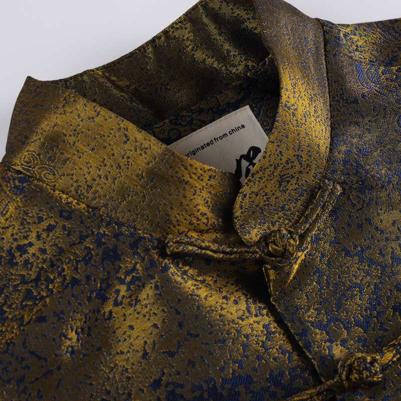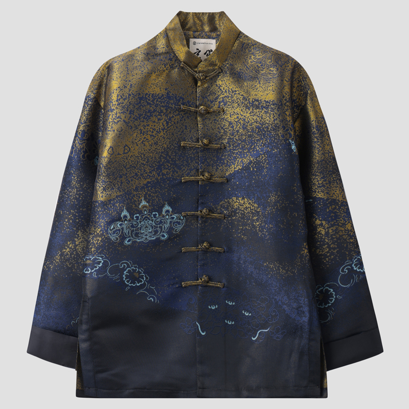 唐装男春秋季中国风中式复古改良盘扣立领上衣鎏金提花国潮外套