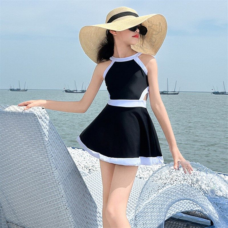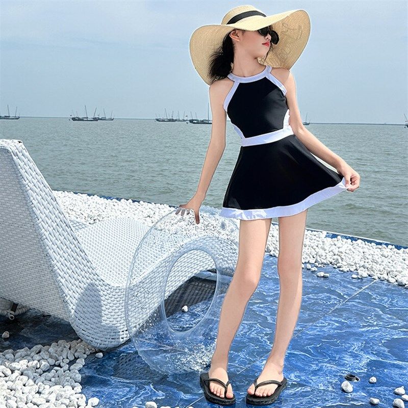 女大童泳衣夏季2024新款儿童黑白连体泳装专业网红洋气游泳衣夏天