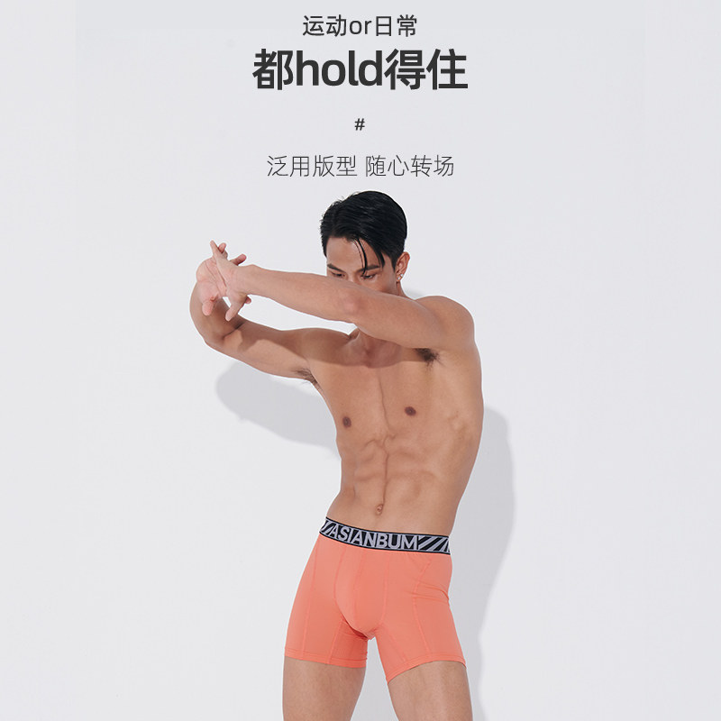 【拍3条99】Asianbum中腰弹性速干平角内裤冰丝U凸透气运动四角裤