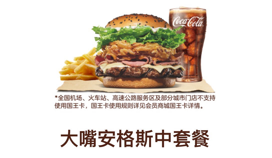 汉堡王代下单大皇堡狠霸王牛堡大嘴安格斯单人套餐鸡腿鸡条鸡块