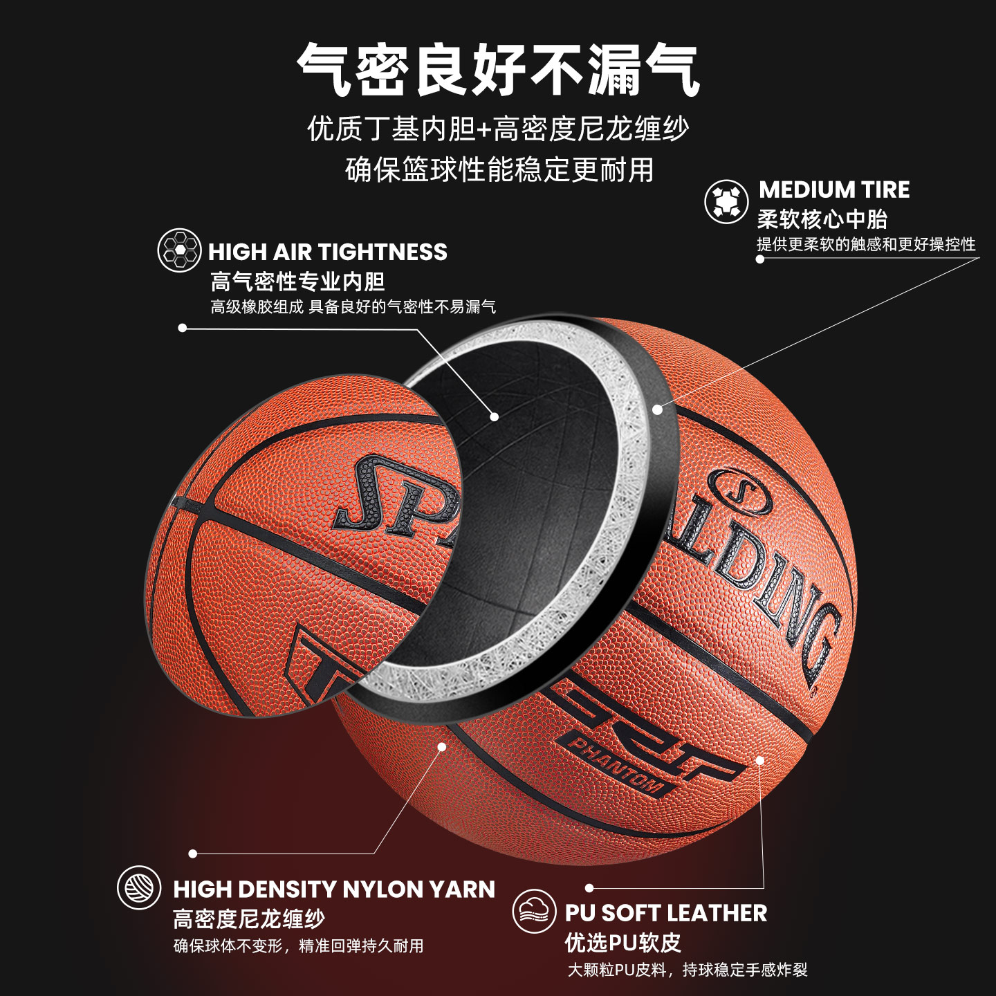 斯伯丁篮球官方正品比赛专用PU球