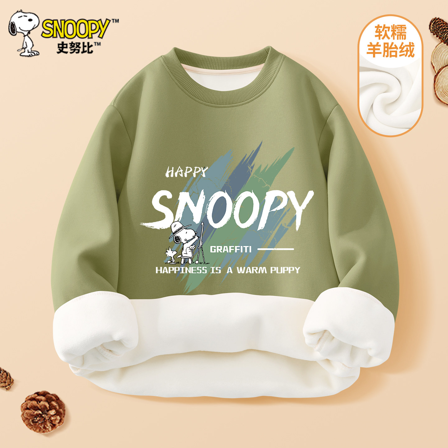 史努比男童卫衣冬季加绒保暖上衣