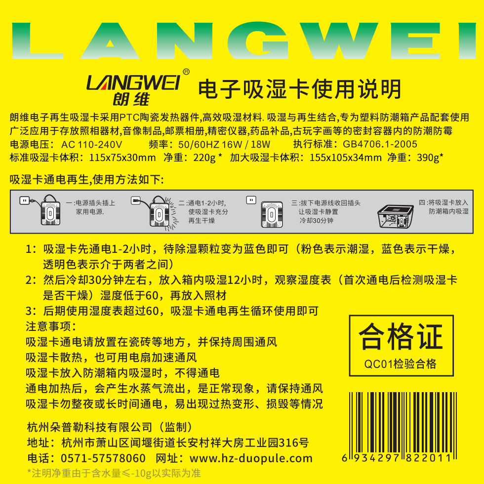 朗维 电子吸湿卡再生循环手办邮票古董茶叶香烟海参通电干燥剂箱器干燥盒防潮除湿珠单反吉他柜相机镜头防霉