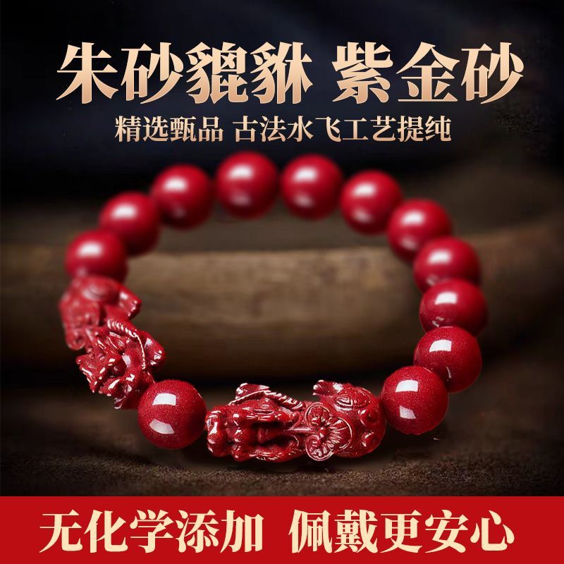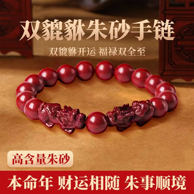 高纯度真品朱砂貔貅招财转运手串男女款本命年护身符手链情侣招财