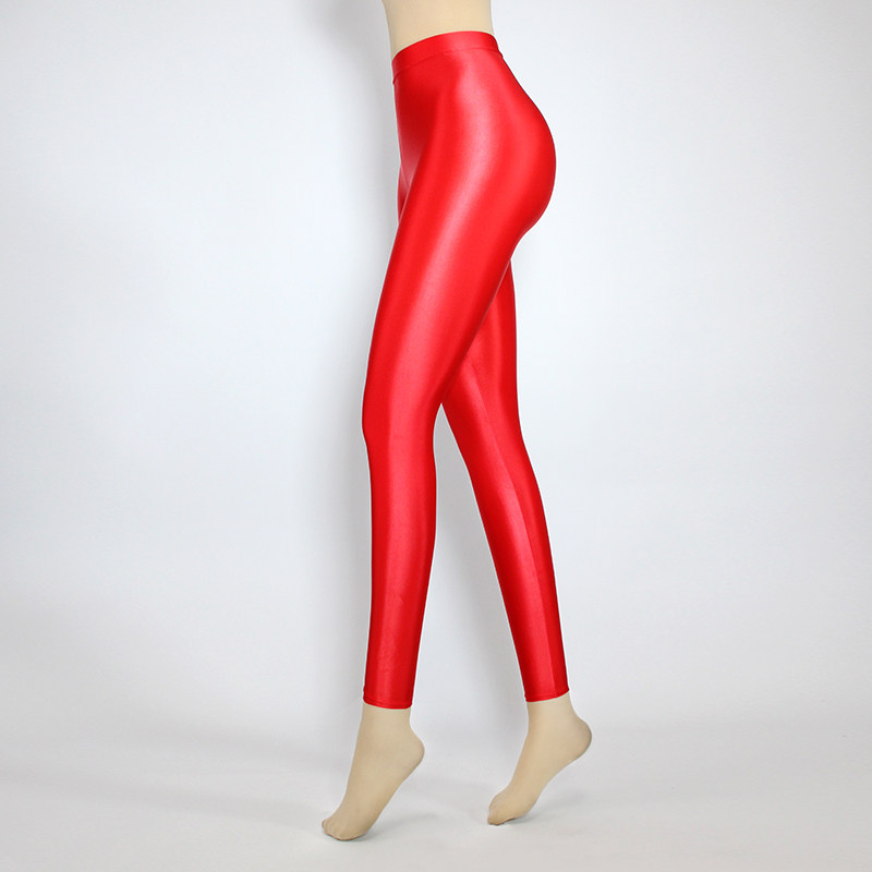 油亮瑜伽健身薄款春秋高腰光泽裤女外穿油亮丝滑高弹力九分打底裤