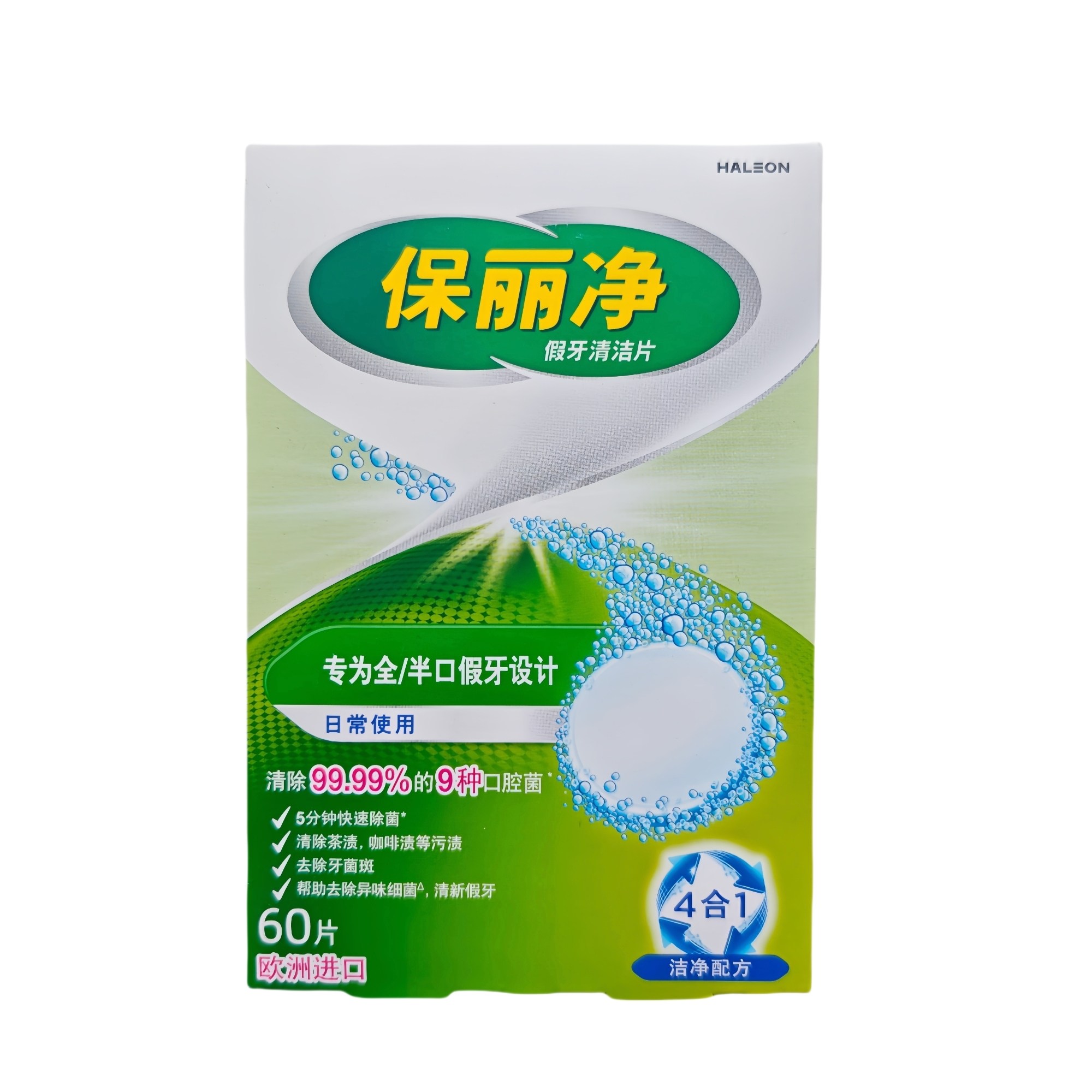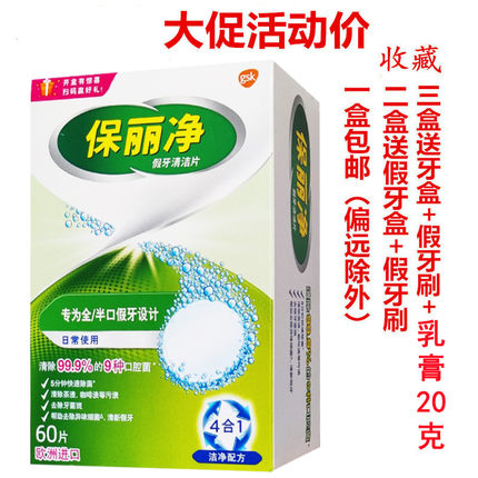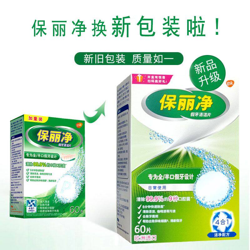 现货保丽净假牙清洁片60片全口半口义齿泡腾片清洗剂保利净洗牙片