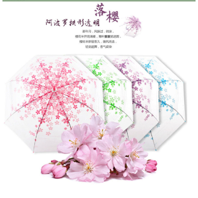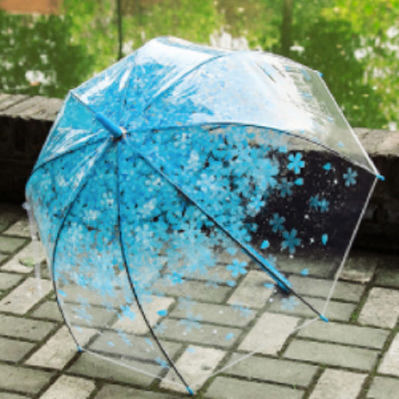 创意个性花卉图案樱花直柄透明儿童长柄塑料广告伞雨伞定制印logo