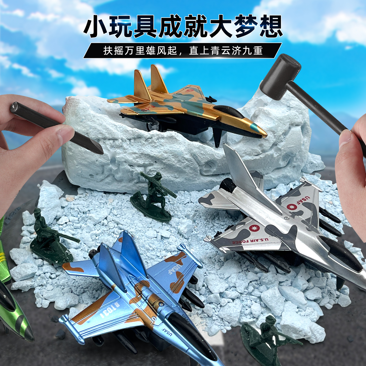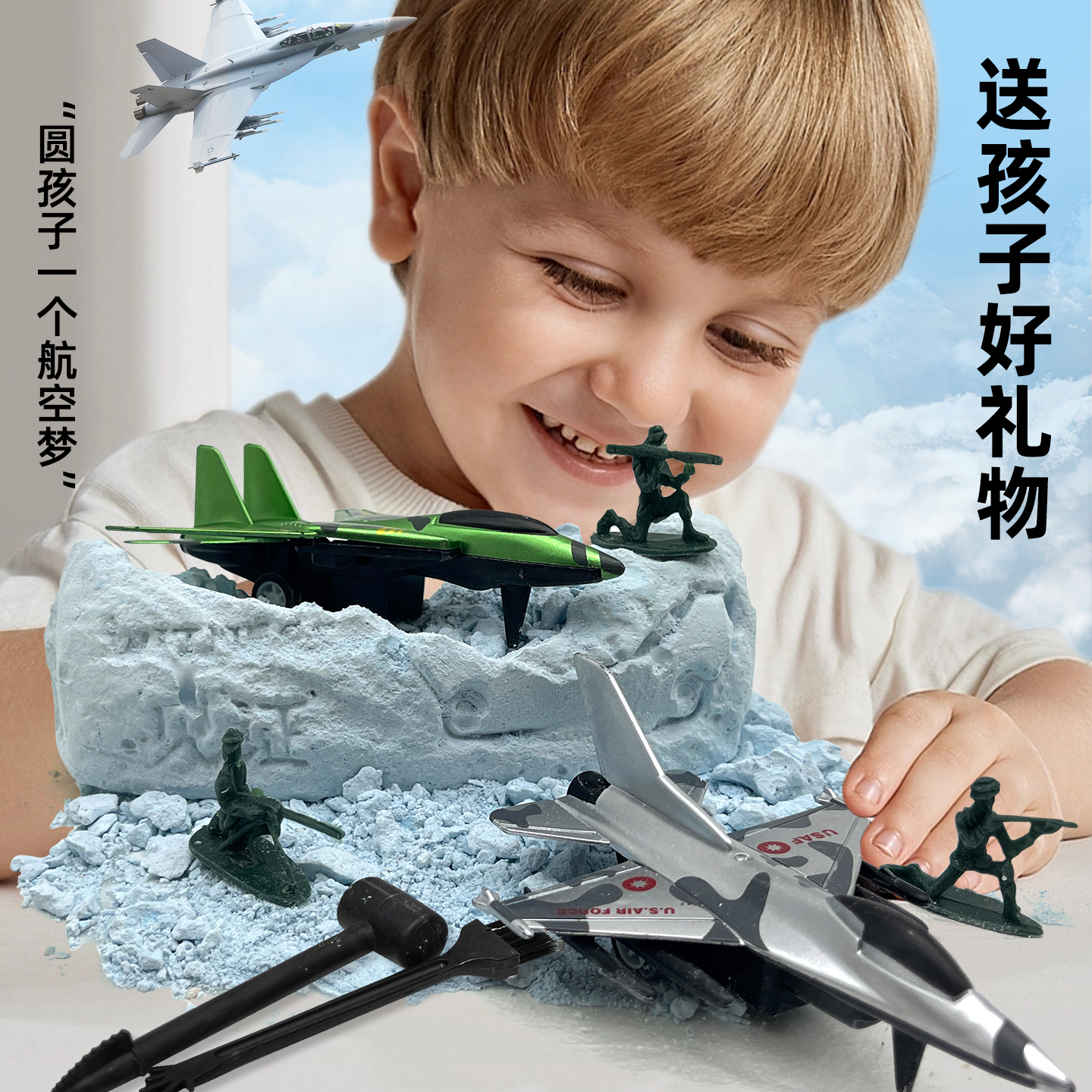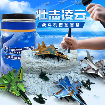 飞机战斗机考古盲盒儿童男女孩挖土挖宝模型手工diy考古挖掘玩具