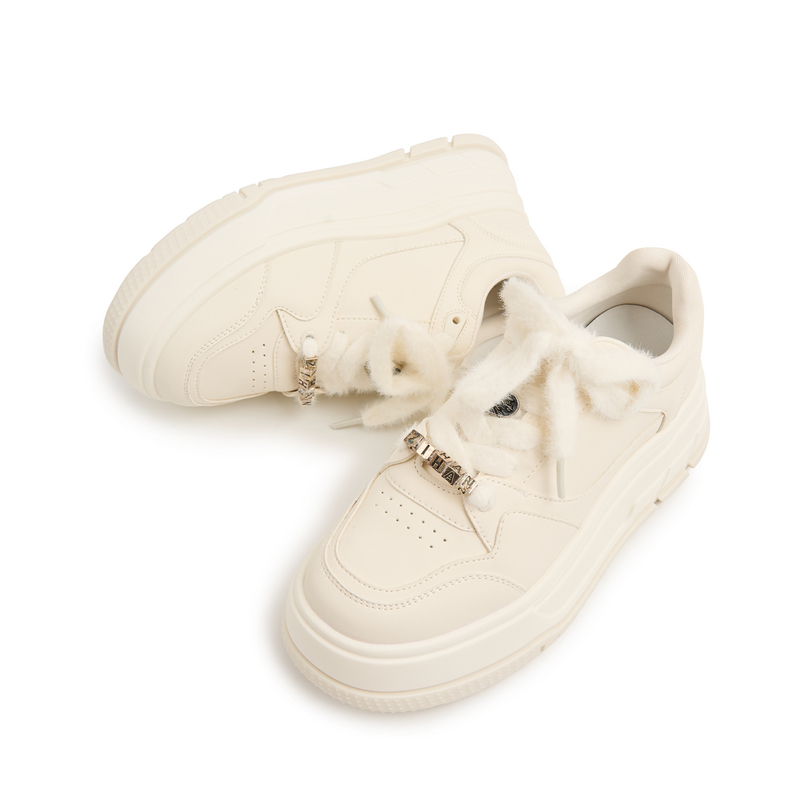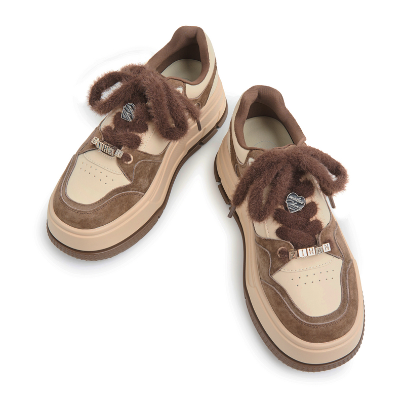 紫涵增高厚底圆头板鞋女2024年冬季新款毛绒鞋带运动休闲鞋松糕鞋