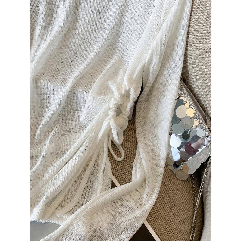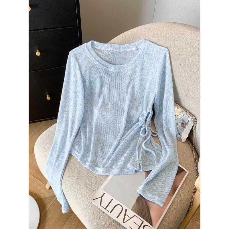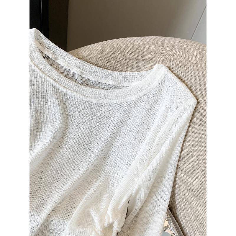 不则短款防规晒罩衫女夏薄zt纱蓝色感长级袖高T恤空调上衣网纱薄