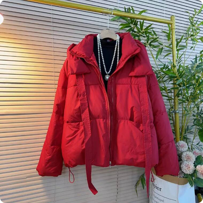 冬季爆款韩系小熊耳朵立领连帽加厚棉服外套大码短款保暖面包服女