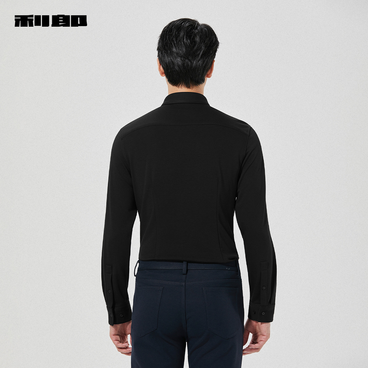 利郎官方含山羊绒商务黑色衬衫