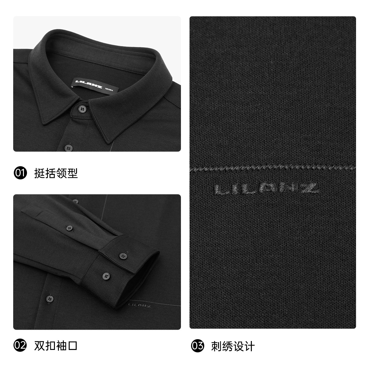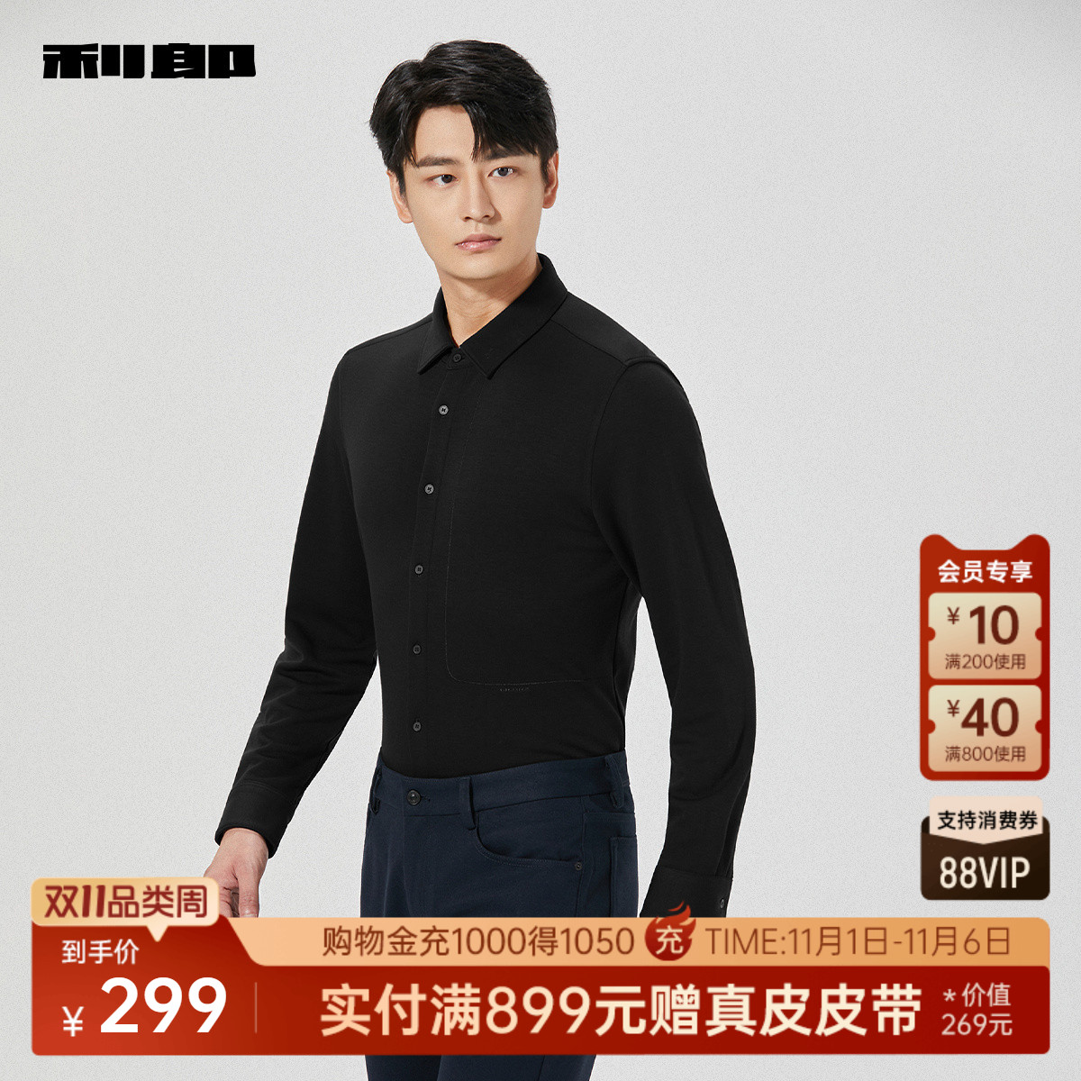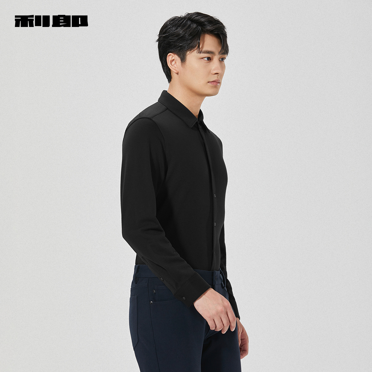 【含山羊绒】利郎官方衬衫男士2025冬季新款商务男装黑色微弹衬衣