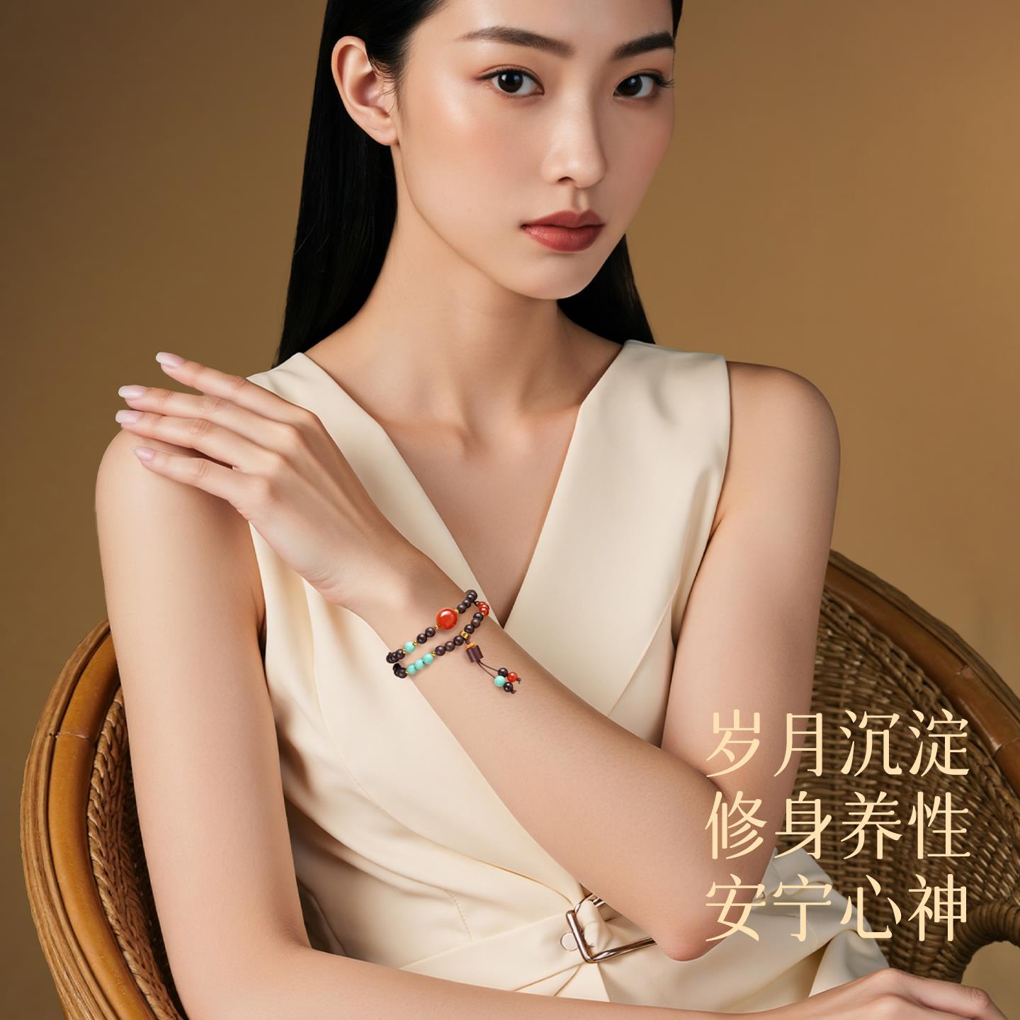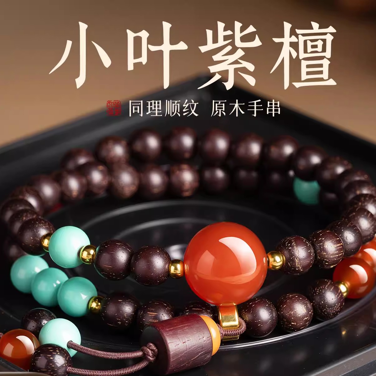 小叶紫檀红玛瑙多宝手串女