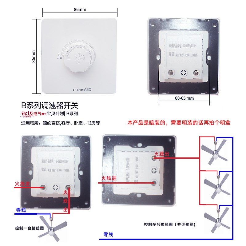 锦迈电气吊扇调节开关15-500W大功率无极调速开关 风扇调速器220V