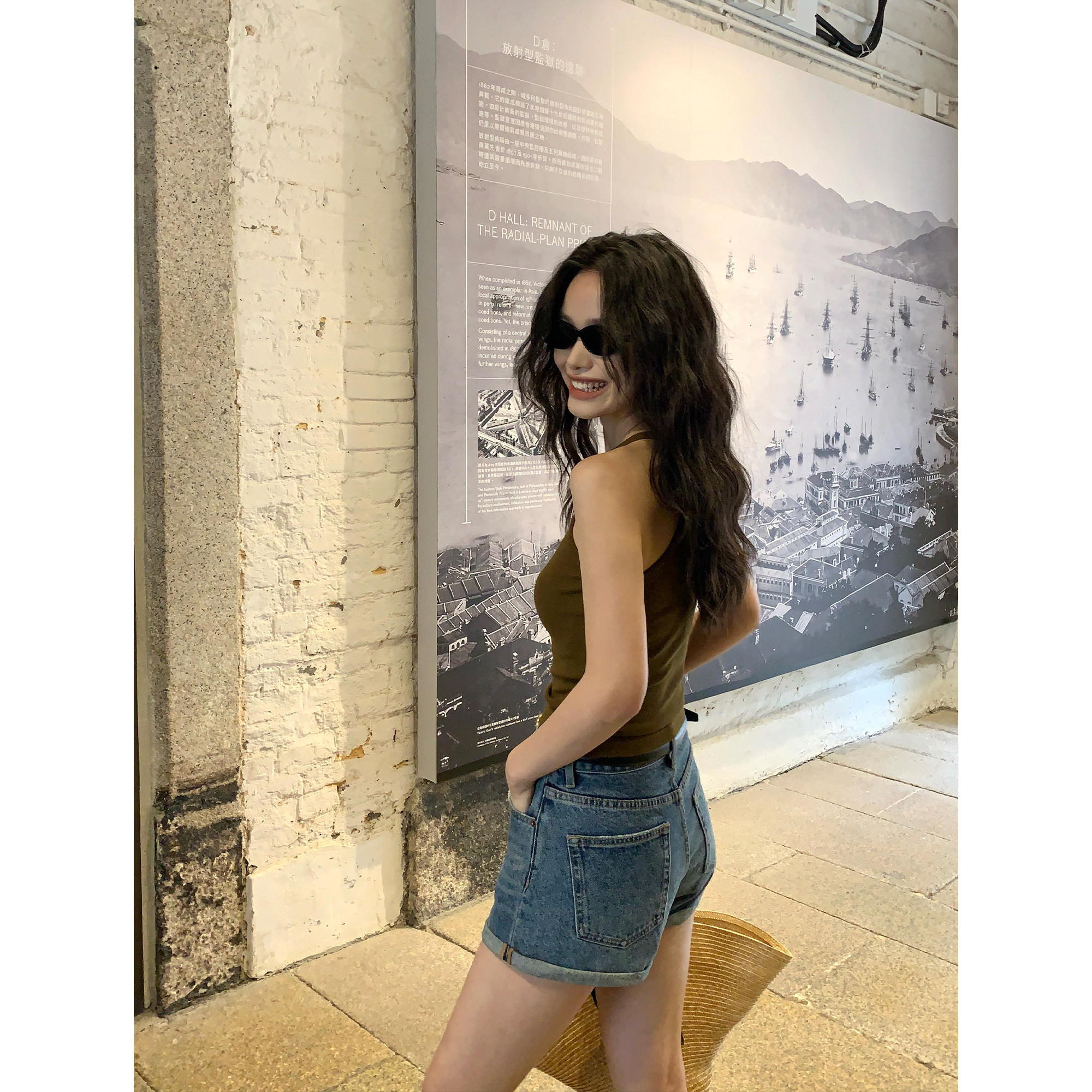复古高腰牛仔短裤女阔腿热裤