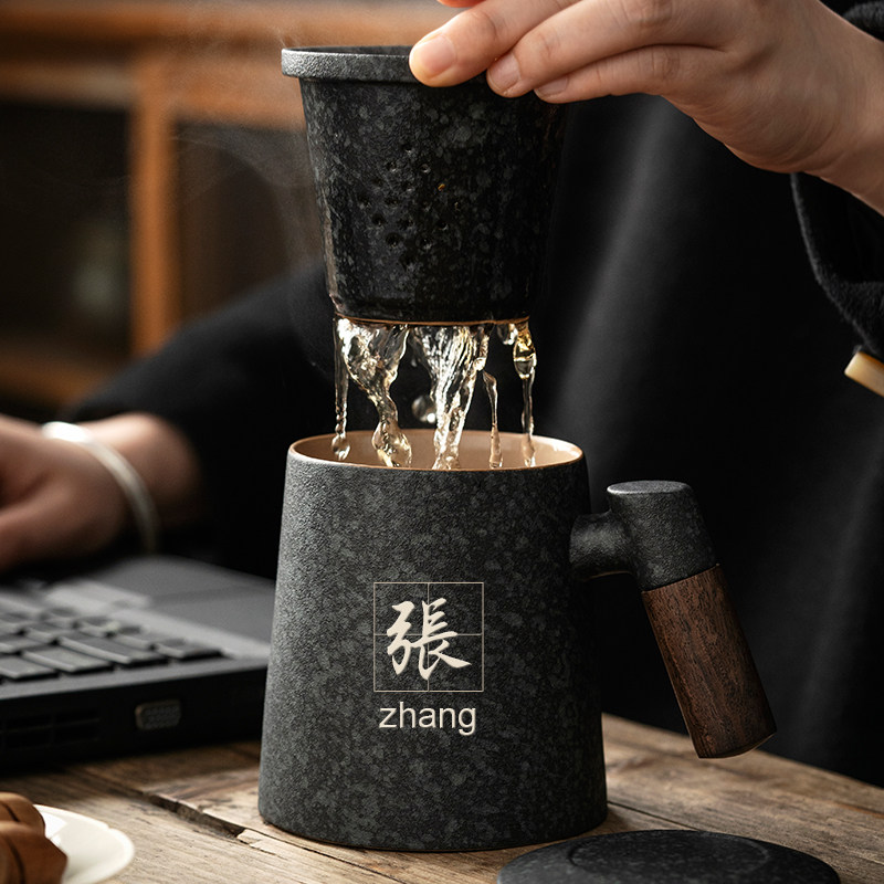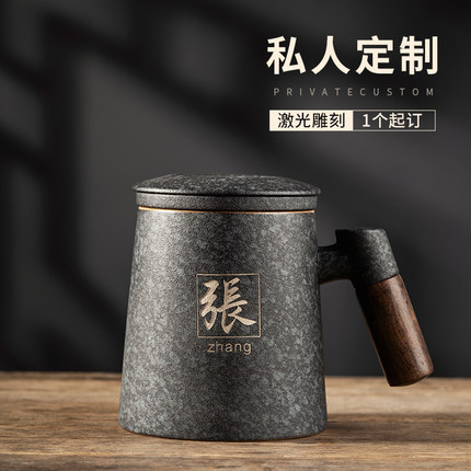 茶杯定制茶水分离杯子男士办公室个人专用陶瓷马克杯父亲节刻字