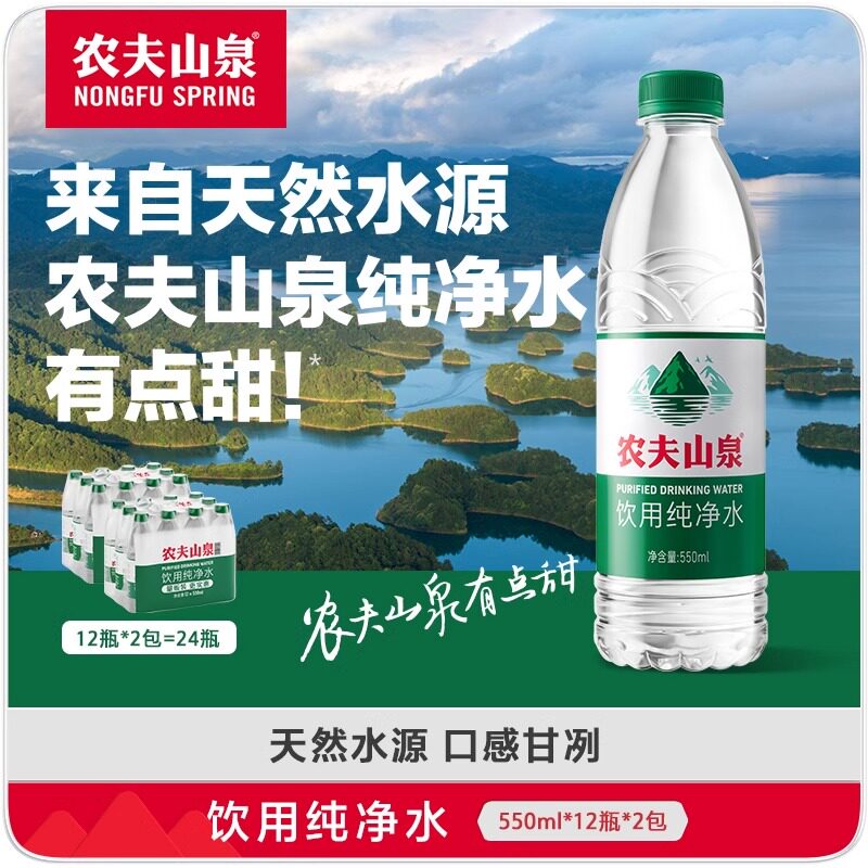 竞价农夫山泉饮用纯净水550ml*24瓶*2箱/12瓶*4提小瓶装非矿泉水