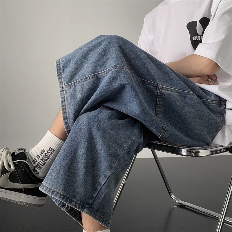 夏季美式阔腿工装七分裤子男女日系高街潮牌直筒宽松大码牛仔短裤