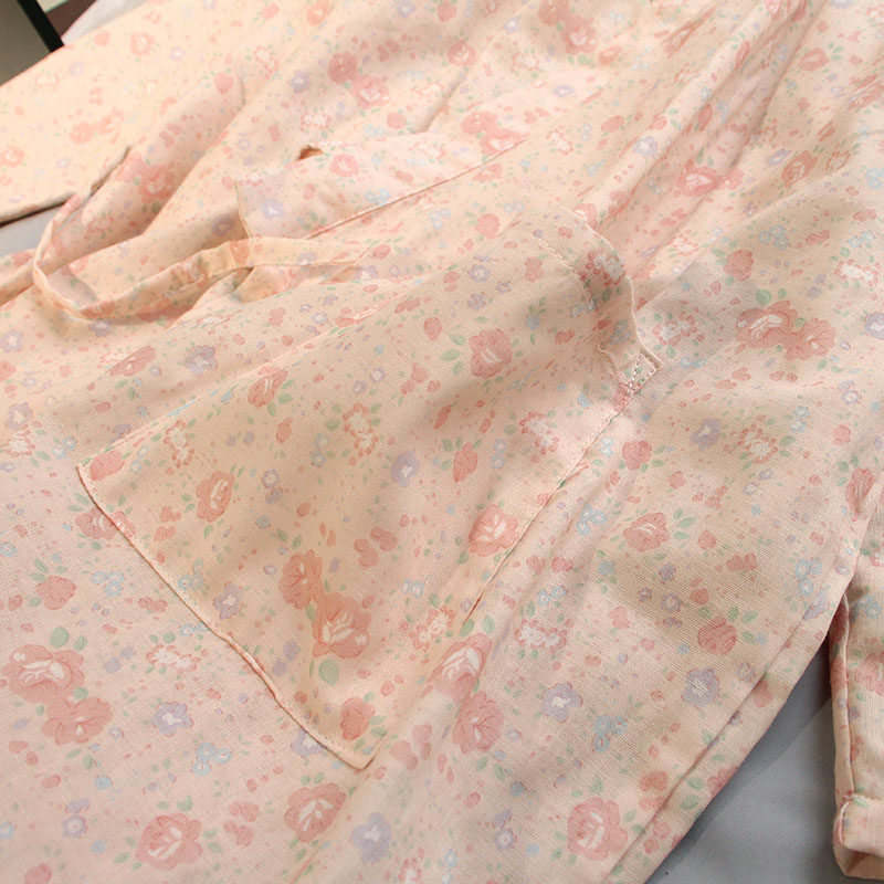 女士春夏季纯棉纱布碎花浴袍