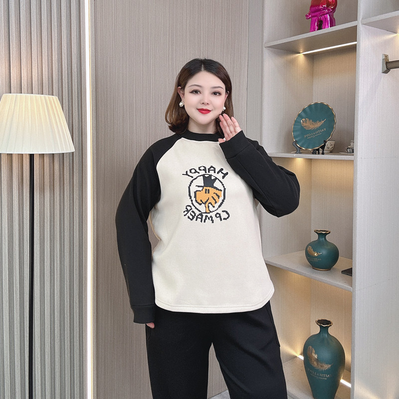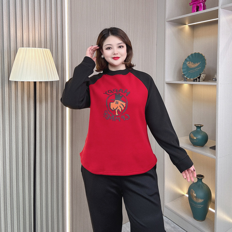 大码女装春秋冬新款胖mm显瘦遮肚子加绒卫衣洋气减龄长袖打底上衣