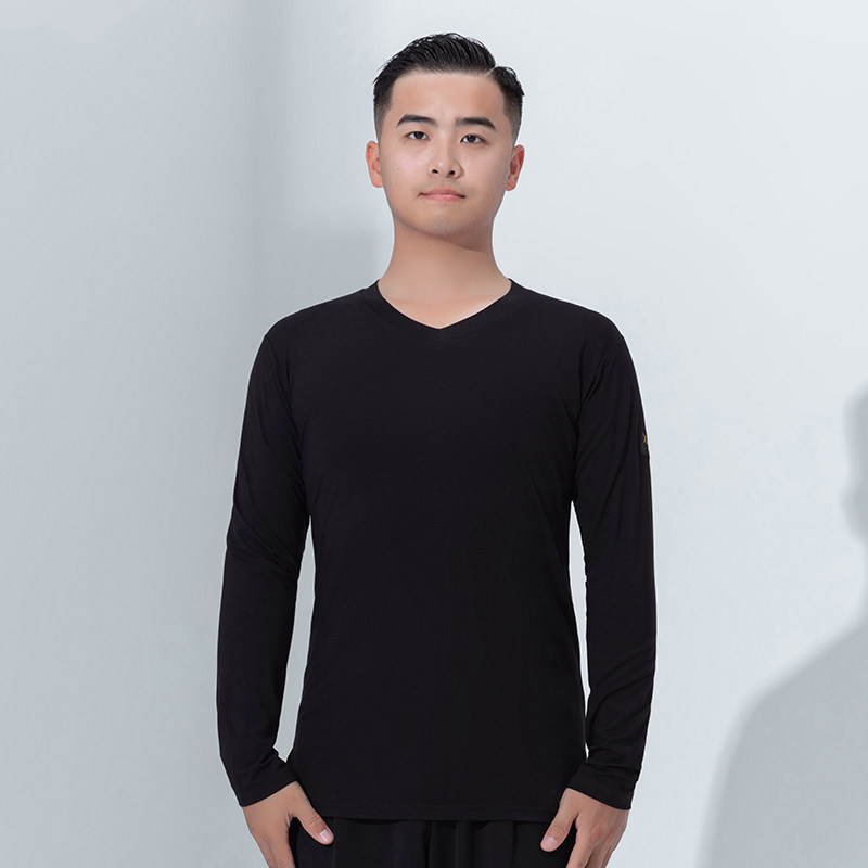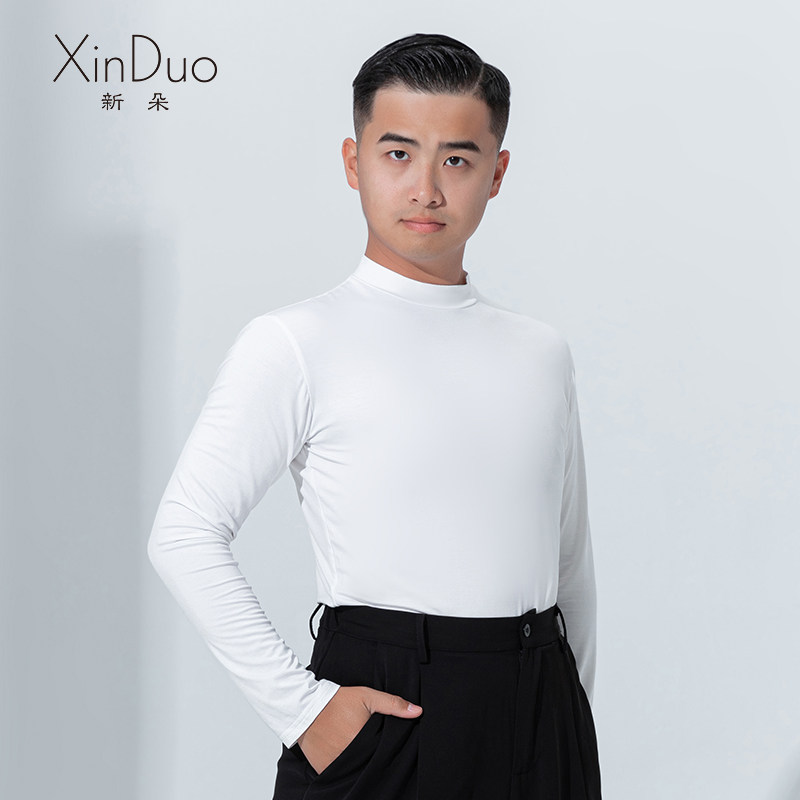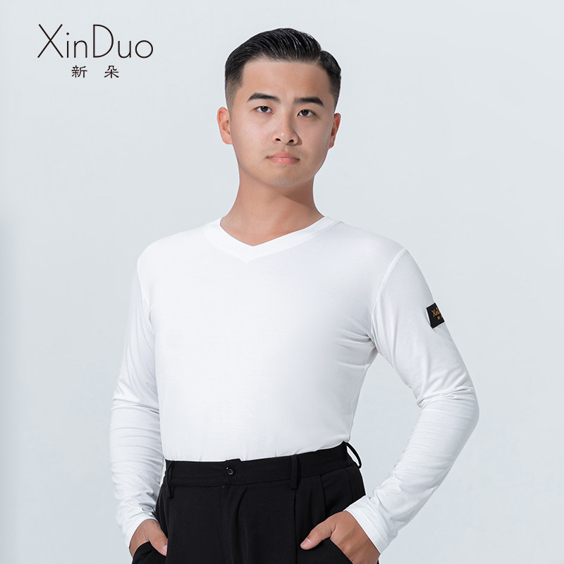 新朵拉丁舞上衣男士秋季新款长袖摩登舞服国标舞交谊舞练功服舞衣
