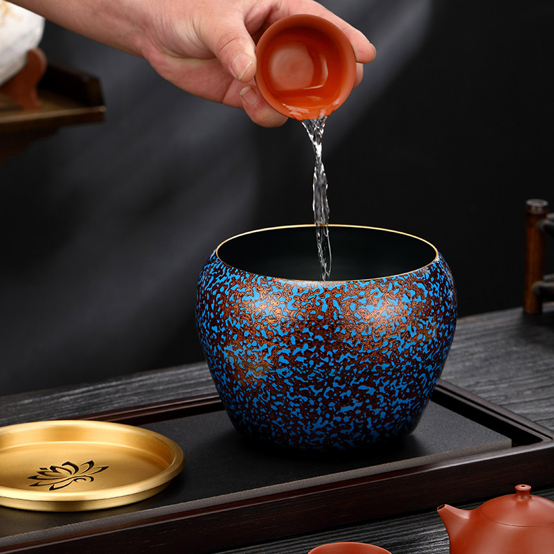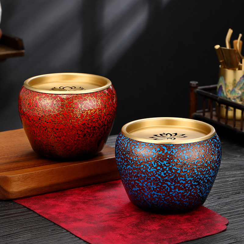 大漆纯黄铜茶渣缸高端家用茶具配件茶洗茶水缸茶道水盂废水杯洗缸